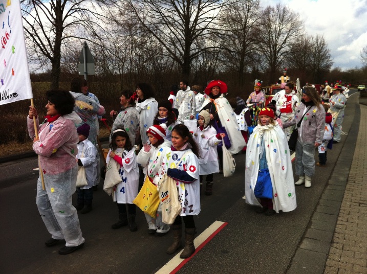 Damit war das Wochenende für die Jecken der KGS Müllekoven aber noch nicht zu Ende. Denn dieses Jahr hatte sich eine Gruppe engagierter Eltern und Lehrerinnen gefunden, die am Zug teilnehmen wollten. Und so starteten 30 Jecken unter dem Motto „ABC, mir Pänz sind jeck wie eh und jeh“ am Sonntag bei schönstem Sonnenschein mit der Zugnummer 4 und brachten bunt kostümiert Frohsinn und Kamelle unter das Müllekovener Volk.