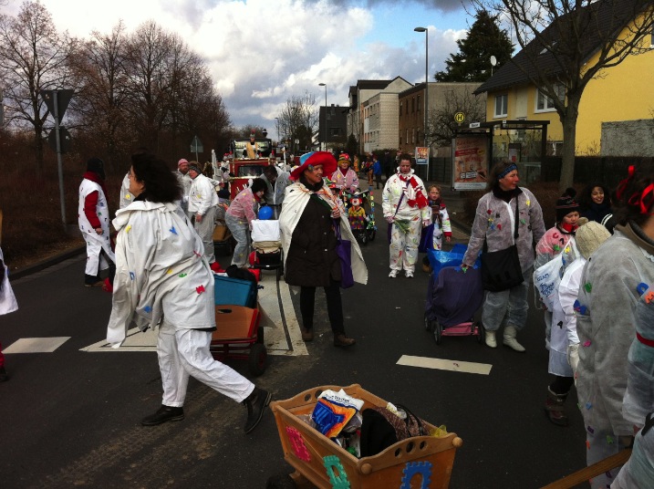 Damit war das Wochenende für die Jecken der KGS Müllekoven aber noch nicht zu Ende. Denn dieses Jahr hatte sich eine Gruppe engagierter Eltern und Lehrerinnen gefunden, die am Zug teilnehmen wollten. Und so starteten 30 Jecken unter dem Motto „ABC, mir Pänz sind jeck wie eh und jeh“ am Sonntag bei schönstem Sonnenschein mit der Zugnummer 4 und brachten bunt kostümiert Frohsinn und Kamelle unter das Müllekovener Volk.
