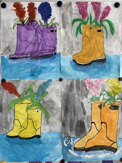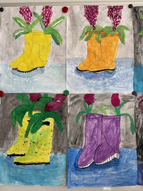 Regen, Regen, Regen Regen, Regen, nichts als Regen. Die Klasse 4 hat dies zum Anlass genommen und hat das beste daraus gemacht und ihre Gummistiefel bepflanzt. Zumindest mit Wasserfarbe. Veröffentlichungsdatum 9. März 2026 Veröffentlicht in Allgemein Vorheriger Beitrag: Snowbaorder Nächster Beitrag: Feuerwehr zu Besuch in unserer Grundschule